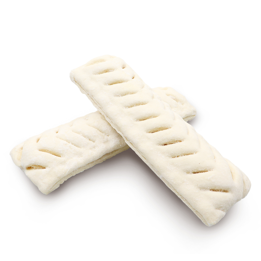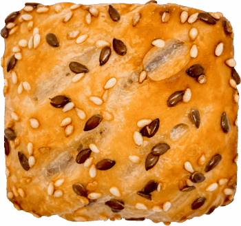 A product made from puff pastry with a cream filling of hard cheese, decorated with cuts.