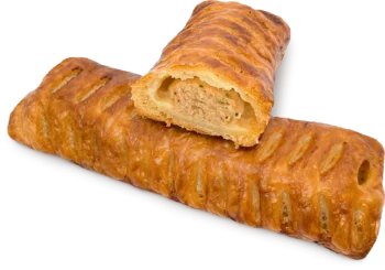 Виріб з листково-дріжджового тіста з начинкою з курячого фаршу та натурального міксу східних трав, декорований надрізами.