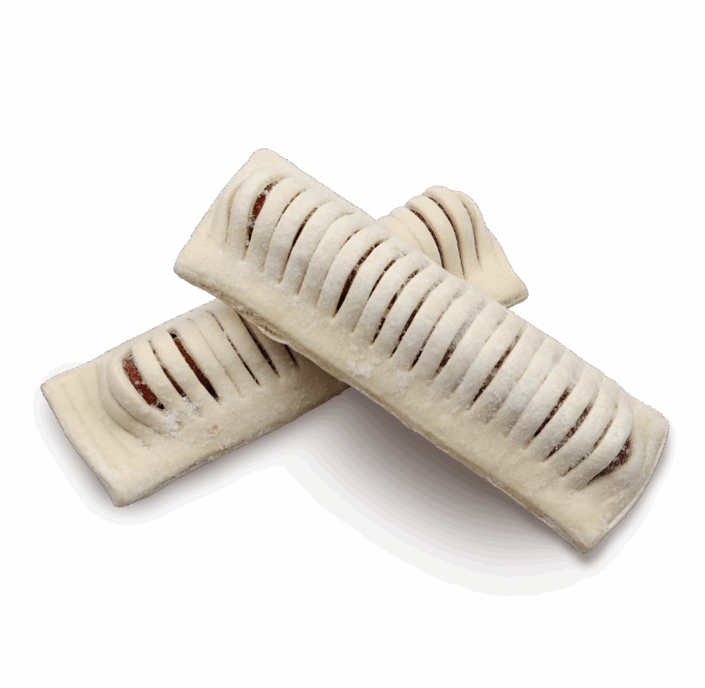 Виріб з листково-дріжджового тіста з начинкою з австрійської ковбаски та пікантного соусу лечо, декорований надрізами.