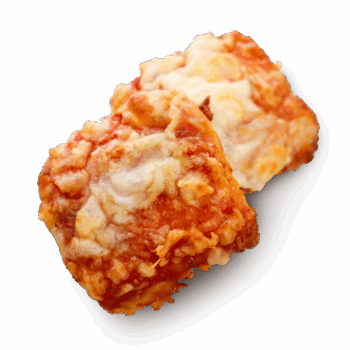 Виріб з дріжджового тіста з томатним соусом, вкритий тертим сиром.