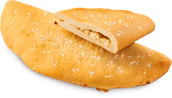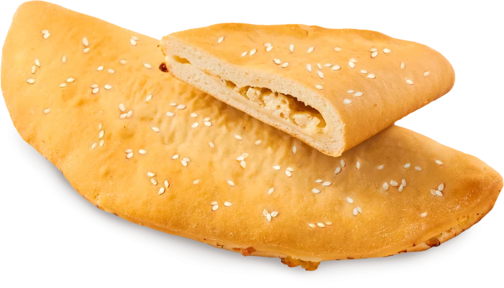 Виріб з дріжджового тіста з начинкою з курятини та твердого сиру, декорований кунжутом.